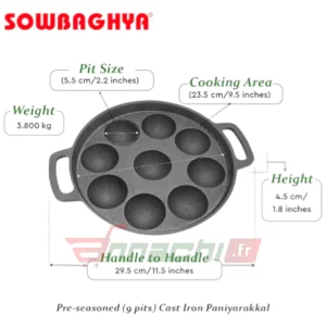 SOWBAGHYA CAST IRON PANIYARAKKAL 9 PITS – 1Pc (SCI03)