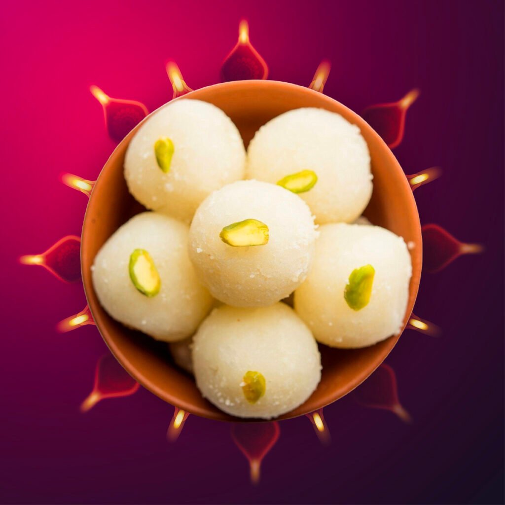 Gulab jamun est un bonbon indien classique fait avec des solides de lait, du sucre, de l’eau de rose et de la poudre de cardamome